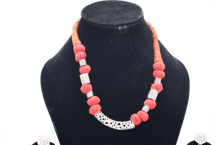 Add a touch of handcrafted elegance to your attire with this beautifully made Cotton Neckpiece featuring a vibrant red dori and sleek pipe bead detailing. Lightweight and comfortable, this necklace is perfect for both everyday wear and festive occasions. Its adjustable tie-up design ensures a custom fit, while its blend of traditional craftsmanship and modern design makes it a standout accessory. Handcrafted by skilled SHG artisans, this piece supports sustainable and ethical fashion. Pair it with ethnic outfits or fusion wear to make a bold style statement.