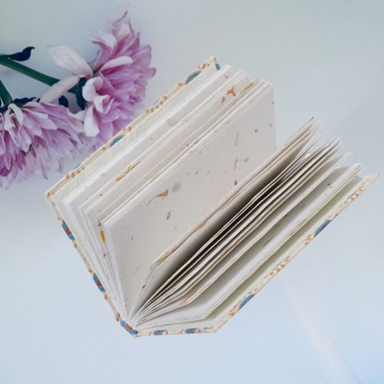 Keep your thoughts close with this beautifully handcrafted pocket diary featuring a charming blue and red heart-floral print on a clean white base. At just 4x6 inches, it's designed for everyday convenience—perfect for quick journaling, notes, or creative sketches while on the move.