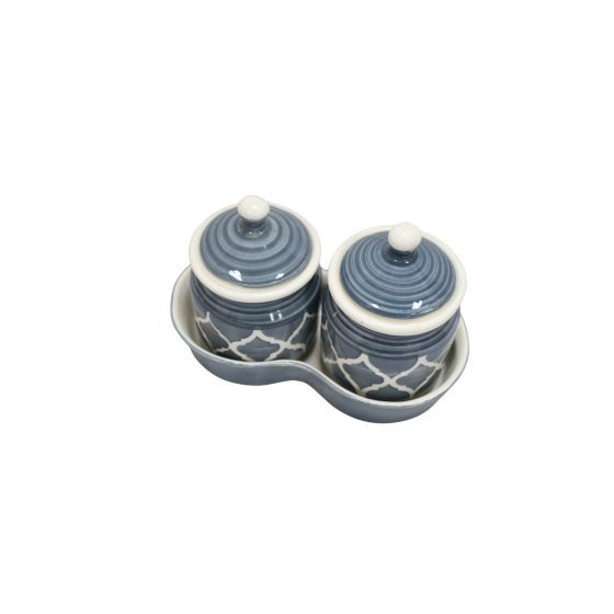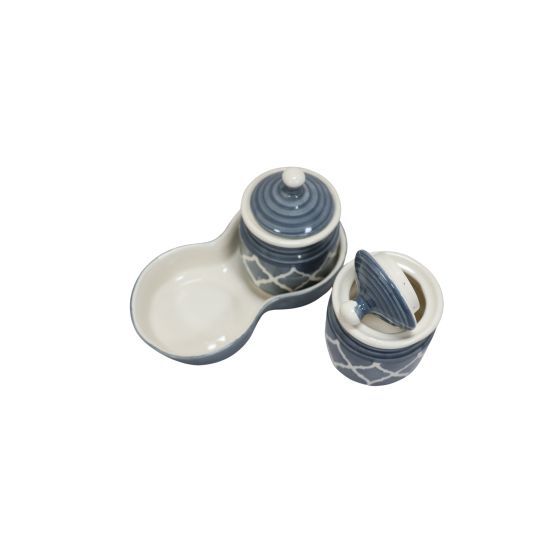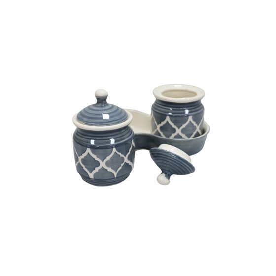 Khurja Pottery Jar + Tray Grey 2+1| Hand painted | Kitchen ware | Home Décor | Grey