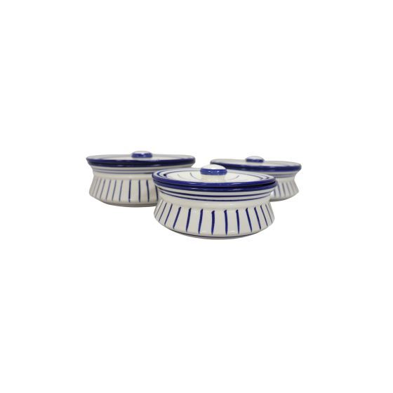 Khurja Pottery Donga 3Pc White and Grey Line 8 | Hand painted | Kitchen ware | Home Décor | White and Grey